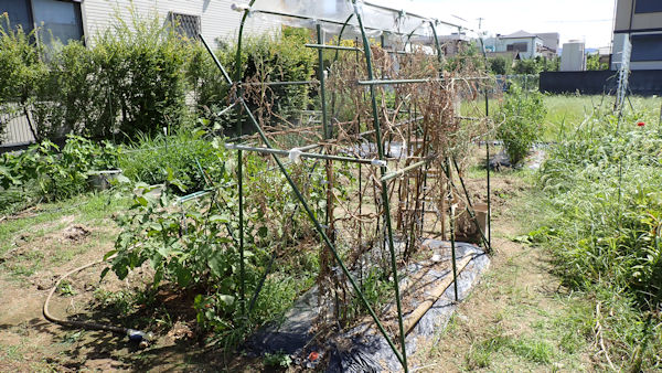 今日は、キュウリの撤収です。ネット、金物、イボ竹など再利用できるものを回収しながら「棚の解体」を済ませました。その次は雑草退治、本当は「天地返し」まで終わらせたかったのですが、昨夜の深酒が残っています。