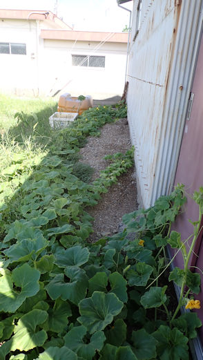 ・冬瓜は花を付ける様子がない、もう少し待って変らぬなら撤収