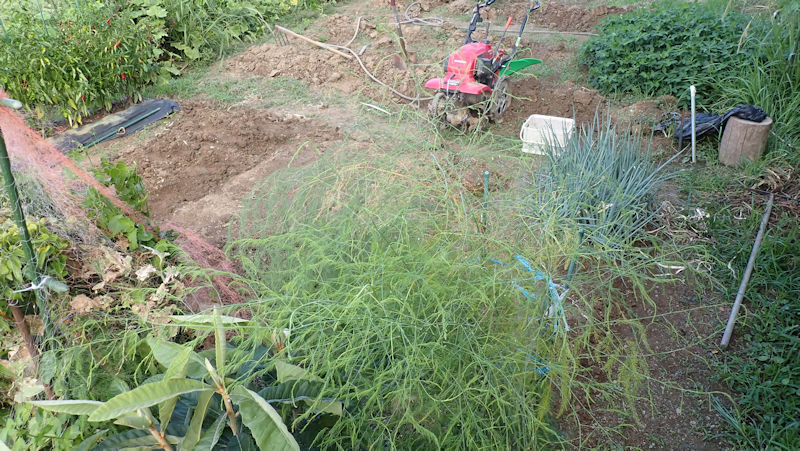 次で、第5ブロックの草抜きが終わる。他のブロックを含めて、一気に耕運機掛けして、秋用の畝・春用の畝を分けでケアしていきます。