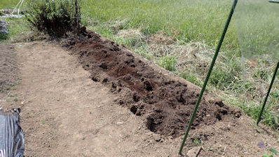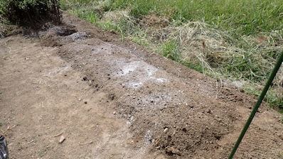 ソラマメとウスイエンドウの畝です。先日、元肥は入れてあり、今日は「成形・根切り虫駆除の農薬・ラッピング」です。