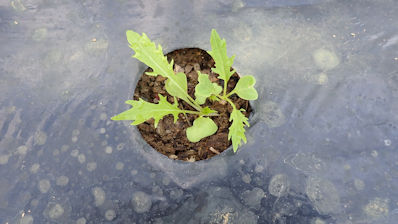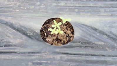 ・不織布トンネルの中では「大根に双葉が出ています。 |