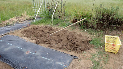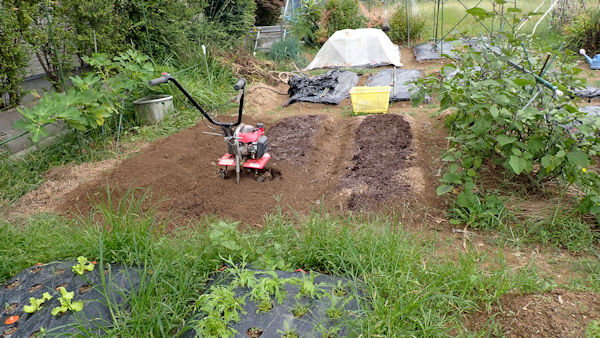 残りの部分は、雨で随分きめ細やかな土になってきました。もう一度耕運機掛けをしてラピングしたいのですが、それは旅行後です。 |