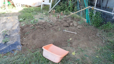 気になるのが「ジャガイモ」です。8/31日に種芋を植付けて、発芽したのは3株のみ(発芽率1/7)。普通1ヶ月が「発芽」の目安で、充分時間は経過している。植え受けた時期はまだ猛暑で、種芋が腐ってしまった可能性もある。