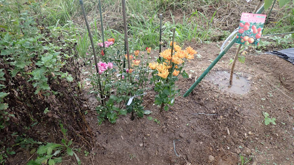 菊は多年草ですが、毎年劣化はする(と思う)。咲き終わった菊が枯れてきたので、新しい苗を植えました。 |