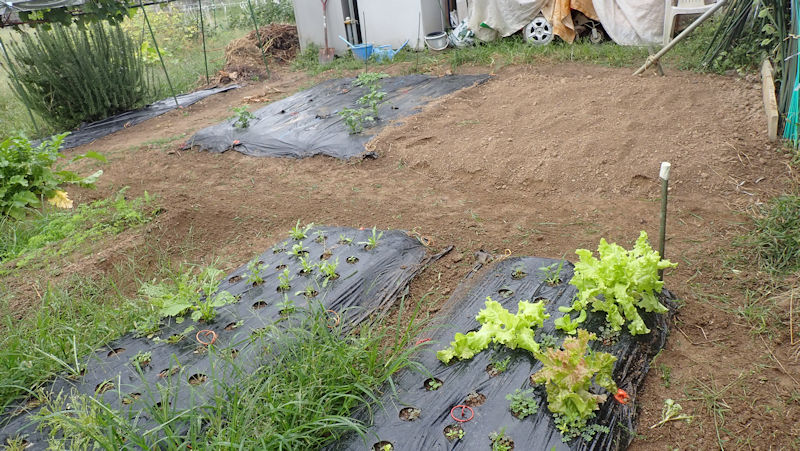雨が多かったようで潅水も不要だったそうです。心配していた「虫による食害」が進行していました。葉物野菜や、発芽し た新芽が食い荒らされます。