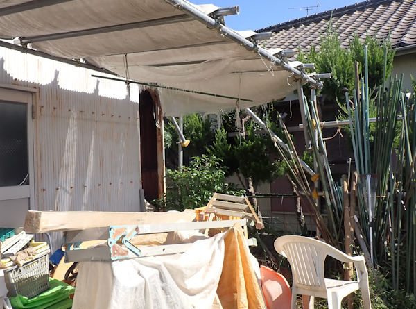 ボロボロになっていた屋根シートを、工務店にお願いして架け替えてもらいました。