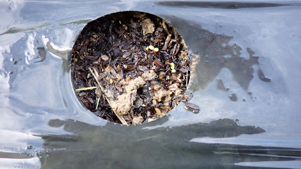 順調の育ってきています。まだ双葉ですが、本葉が出てきたら「間引き」をします。 |