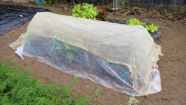 サラダ用の葉物は、虫に強いのでトンネルは掛けません。 |