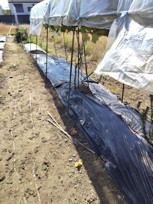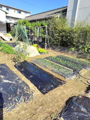 ・安納芋収穫跡を整地してラッピング。春まで休ませます