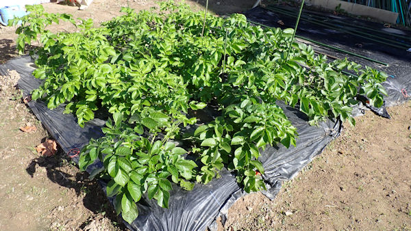 第1回の種芋は殆ど発芽せず、1月遅れで植えなおしたジャガイモが、こんなにふさふさになりました。