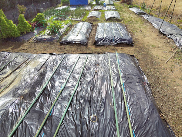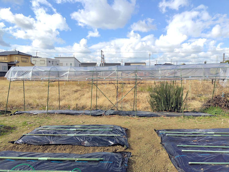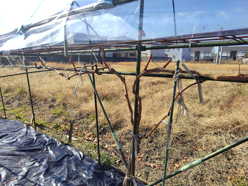 ・風で捲れ上がった黒マルチの張り直し ・草削り第2ブロックの2辺だけ ・ブドウ棚主枝の補助イボ竹撤去 ・咲き終わった菊の剪定 |