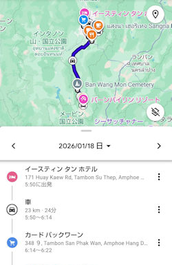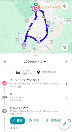 2017年以来で5度目のチェンマイへ。2017年コースに大幅追加となります。チェンライは初体験です! 1月16日(金)早朝に家を出発。リムジンバスJR和歌山駅5:35⇒関空第1ターミナル6:15 ベトジェット ⅤZ823 OSAKA 09:25 (時差時間)⇒Chiang Mai 14:05 サリンさんに出迎えてもらう。 タイ滞在中は、サリンさんご夫婦に観光案内と通訳をお願いしています。 ドコモ海外が予定通り使えることを確認(これで随分助かった)。空港で3万円分両替してホテルへ向かう。 ・宿泊 Eastin Tan Hotel Chiang Mai/50200、171 Huay Kaew Road チェックイン後、ホテル前の大きなショッピングセンターの売り場案内をしてもらい美味しいアイスクリームを食べる。更にマーケットを案内していただて、夕食の食材をテイクアウトして、お別れ。 夕食は、テイクアウトしたピザとビールで済ます。 ホテルで休憩後「夜の散歩」に出る。ここでも買物をして、主なお土産は調達。 |